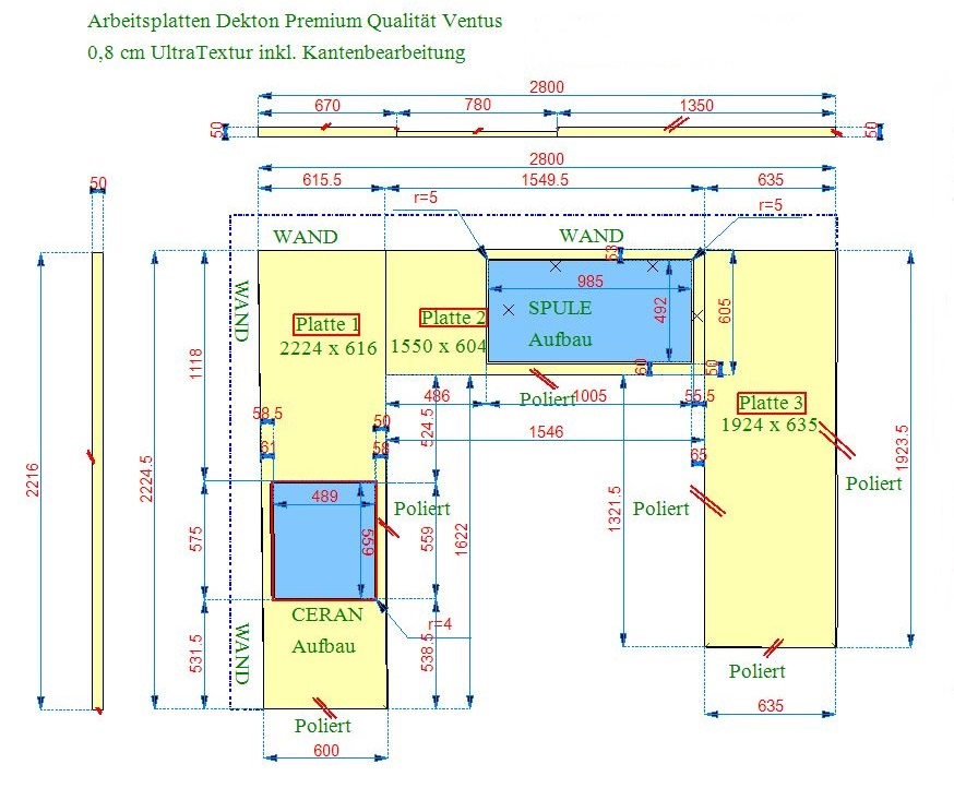 Aufmaß, Lieferung und Montage - Kassel Ventus Dekton Arbeitsplatten