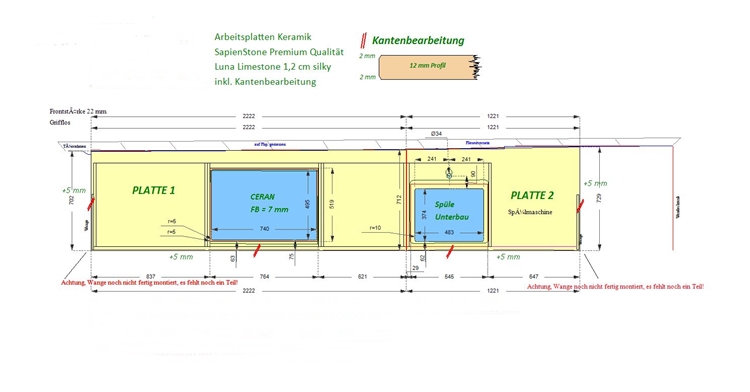 Aufmaß, Lieferung und Montage - Freiburg im Breisgau Luna Limestone Keramik SapienStone Arbeitsplatten