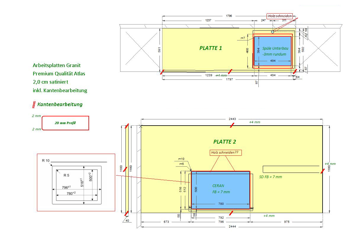 Aufmaß, Lieferung und Montage - Köln Atlas Granit Arbeitsplatten und Rückwand