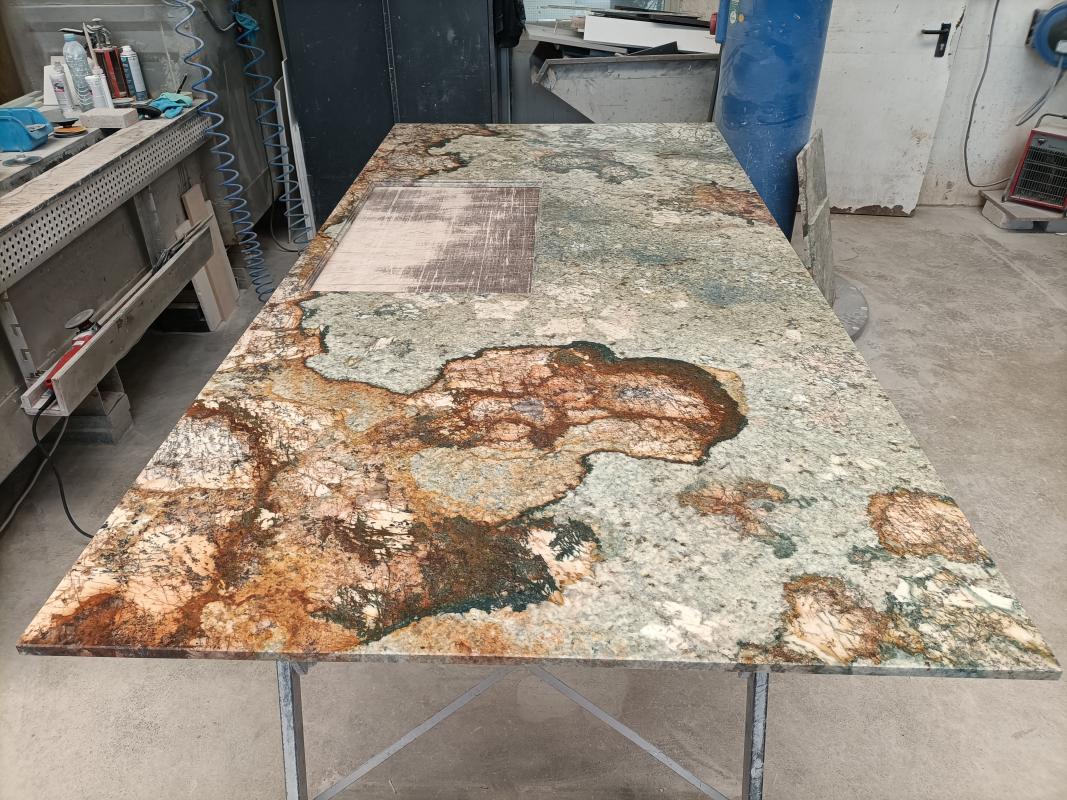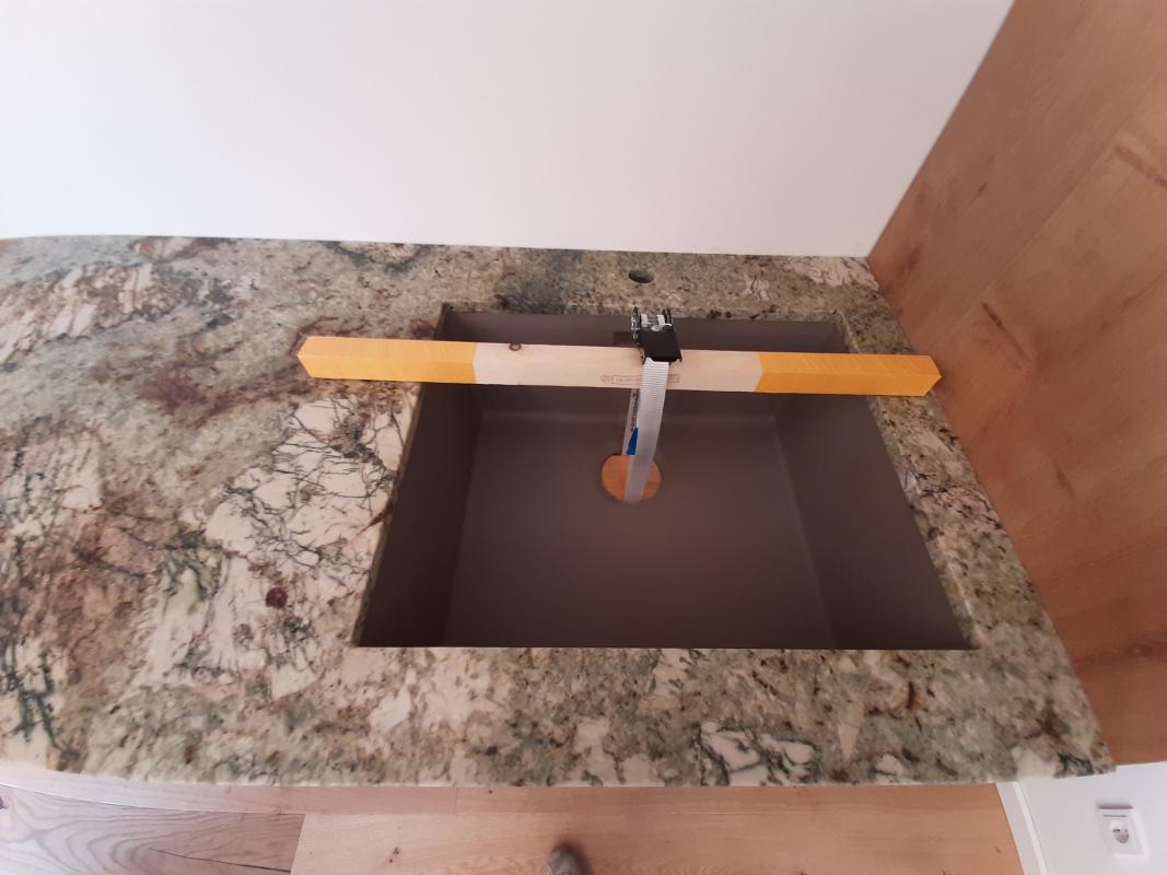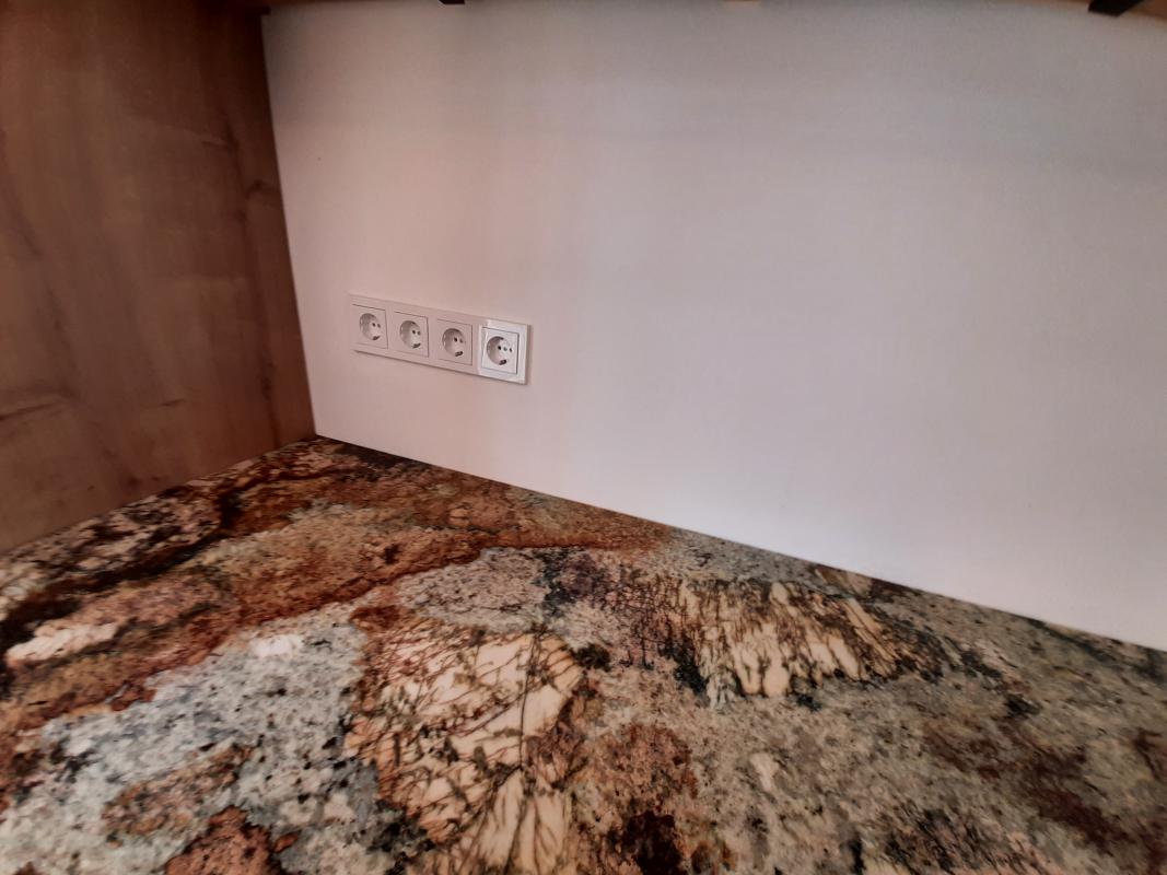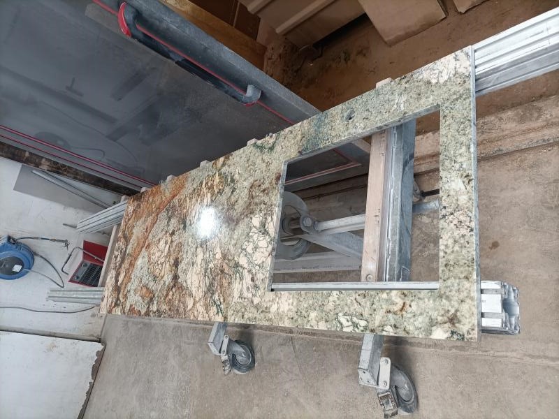 Die Granitplatten sowie der Sockel wurden fachmännisch montiert. Die Kombination aus hochwertigem Material, präziser Verarbeitung und professioneller Montage schafft eine langlebige und stilvolle Basis für den Küchenbereich.