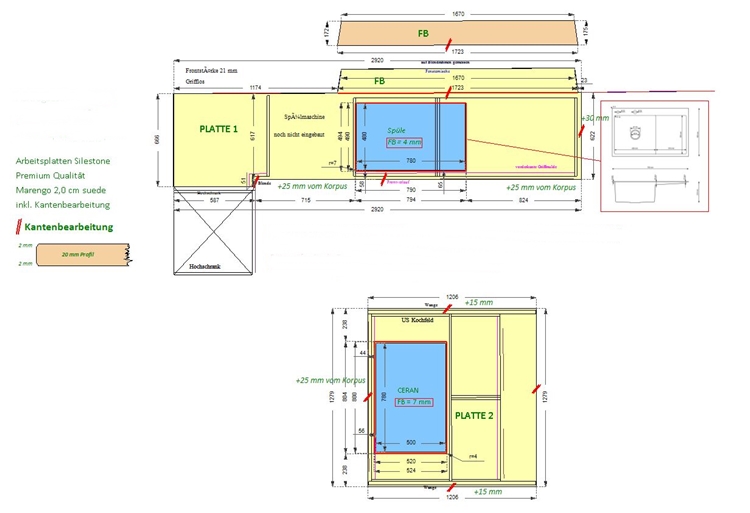 Aufmaß, Lieferung und Montage - Schwabach Marengo Silestone Arbeitsplatten